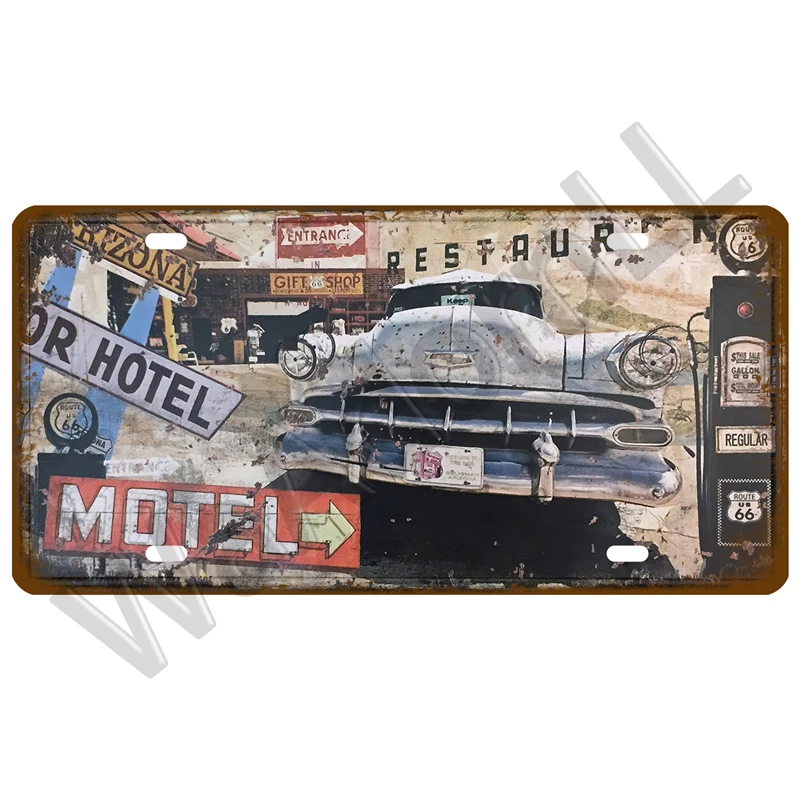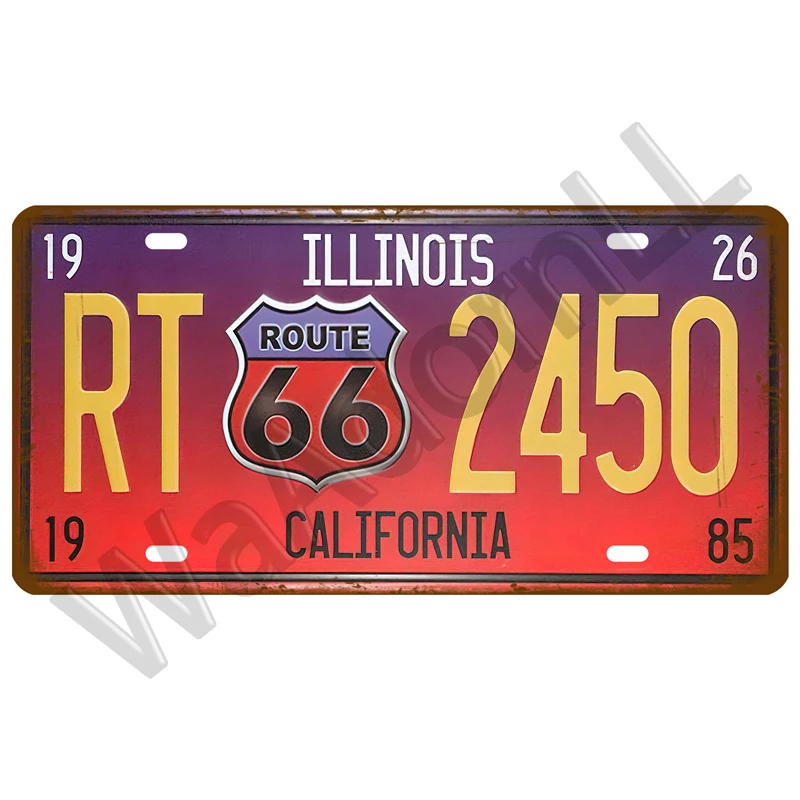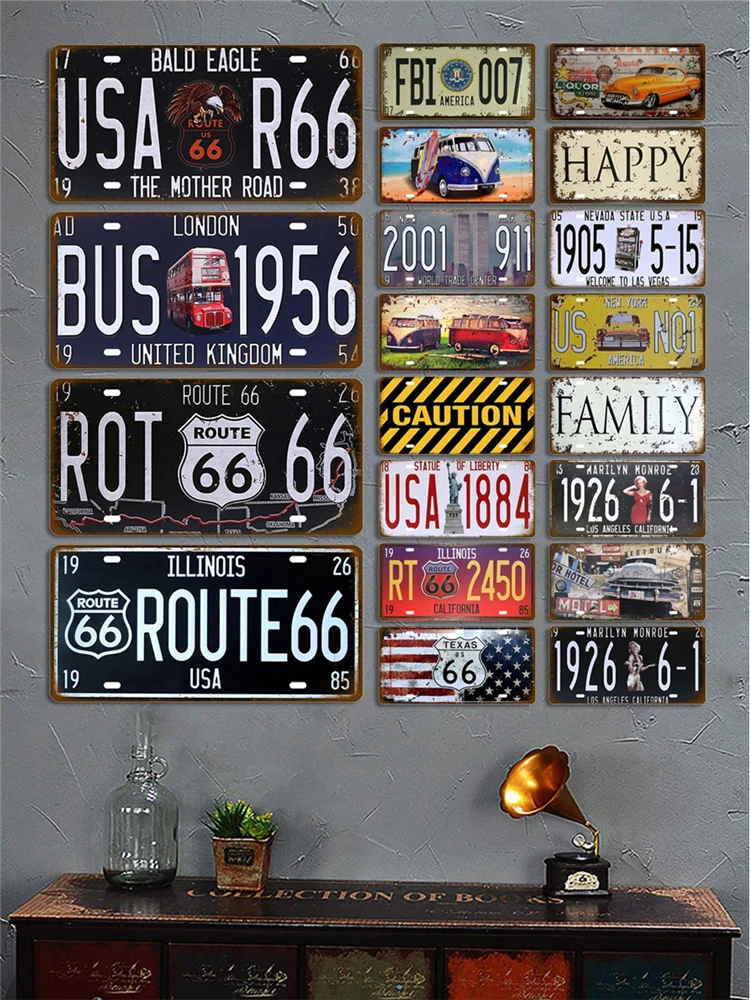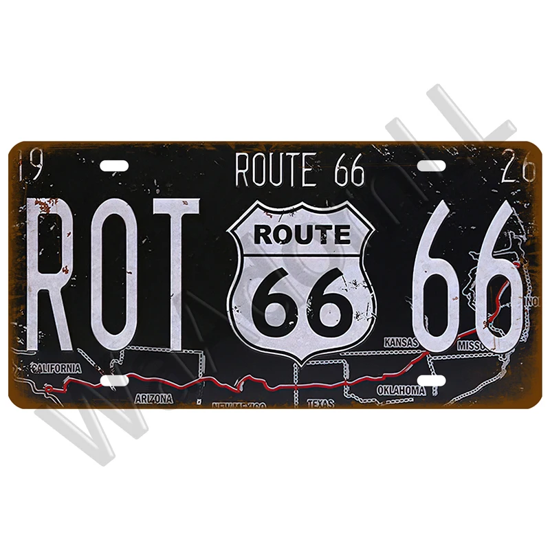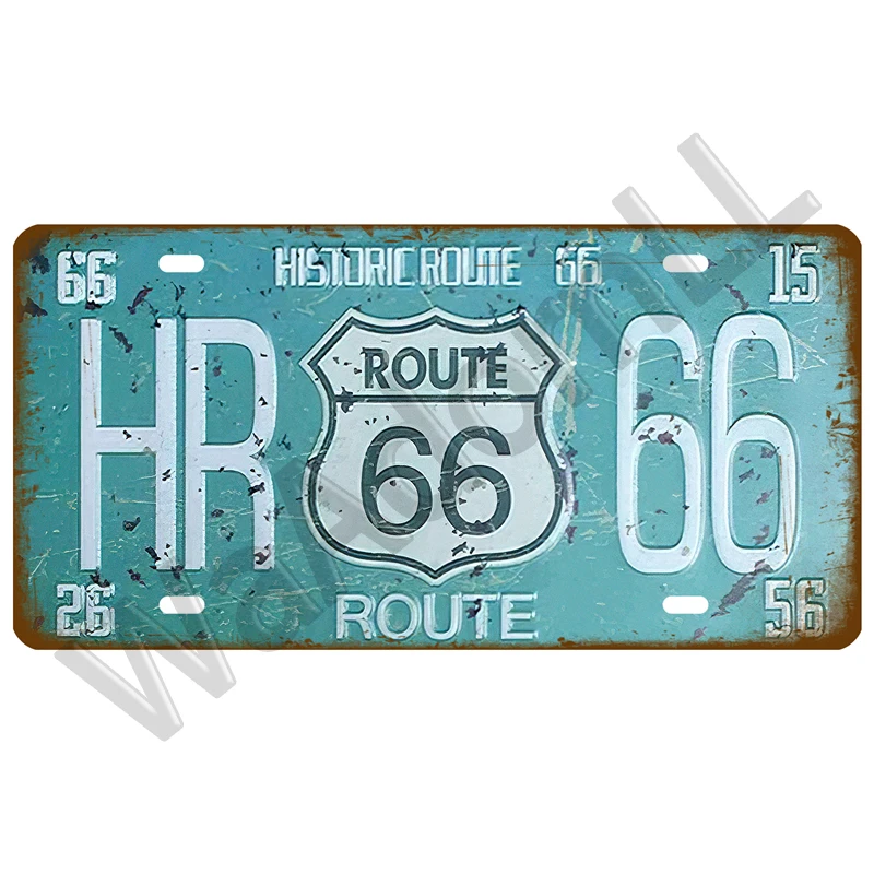 Route 66 Vintage Poster Car Number License Plate Plaque Poster Metal Tin Signs Bar Club Wall Art Garage Home Decoration 15*30cm