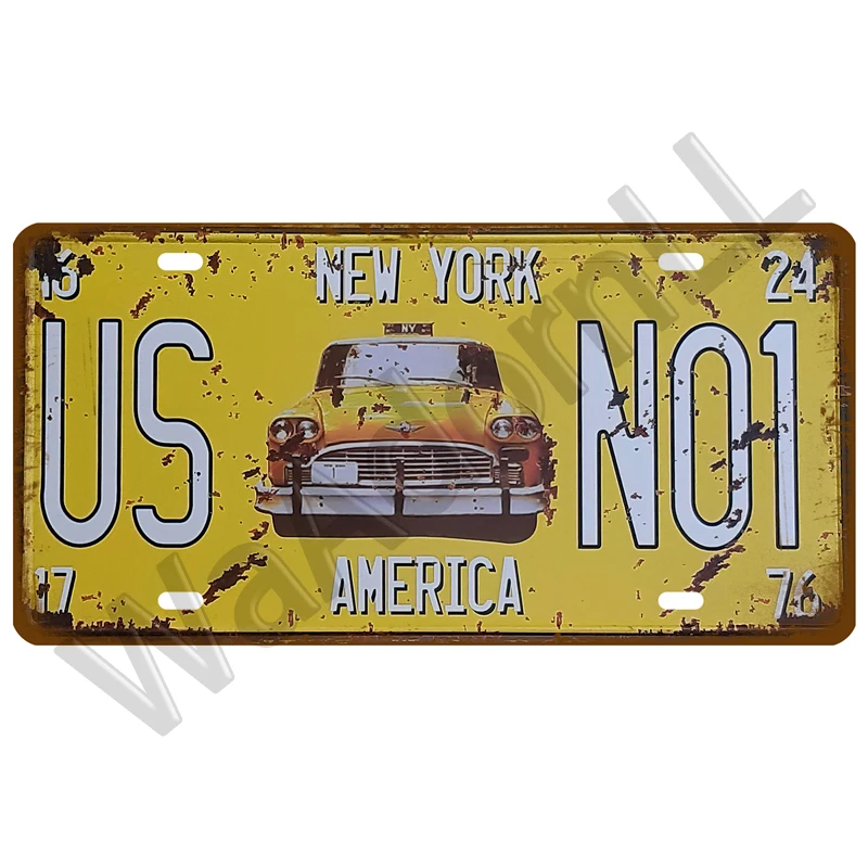 Metal Poster Vintage USA Texas New York California Car Number Metal License Plate Decor Wall Bar Pub Garage Tin Signs & Plaques