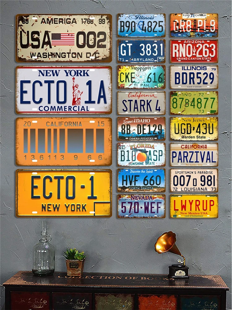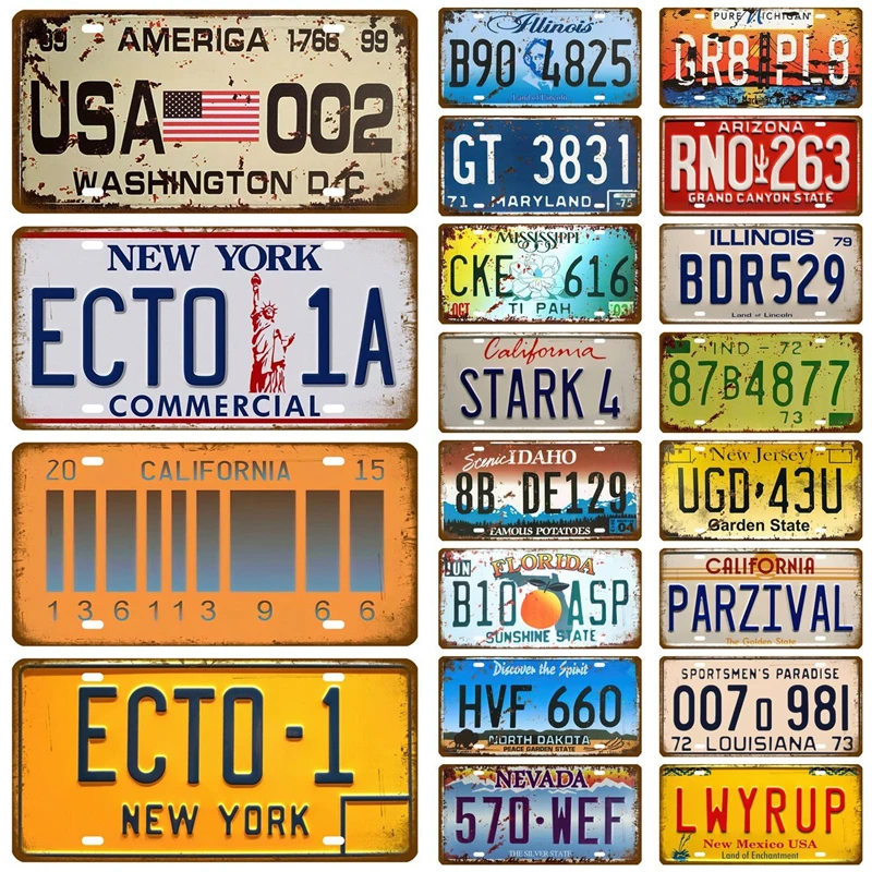 Metal Poster Vintage USA Texas New York California Car Number Metal License Plate Decor Wall Bar Pub Garage Tin Signs & Plaques